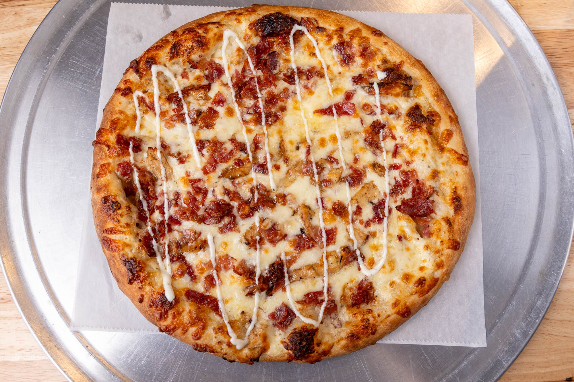 Total Gem of a pizza place. Pizza was a 10/10. We had the Sicilian and traditional. Both were fantastic. Buffalo chicken salad was out of this world. Highly recommend!!